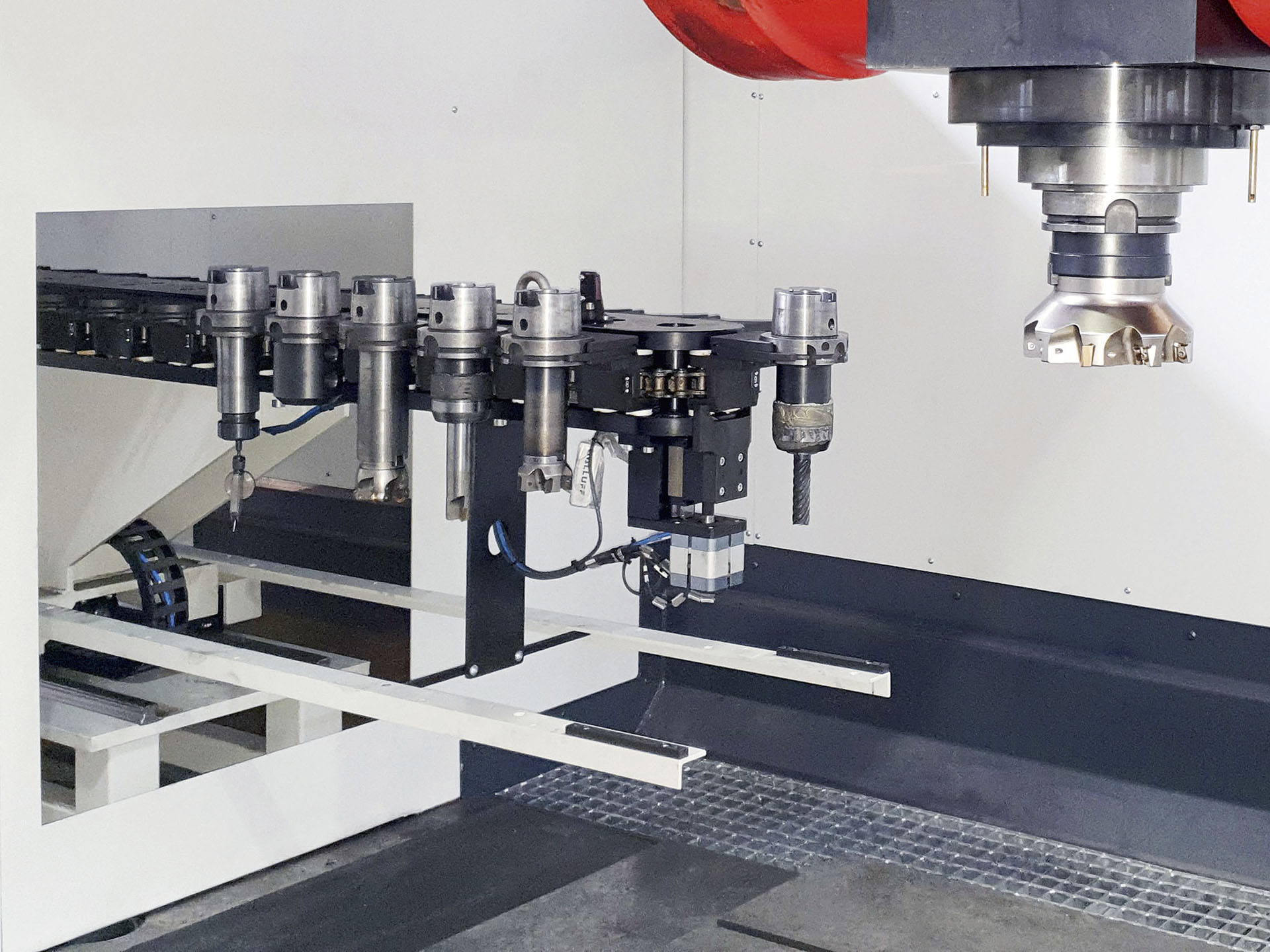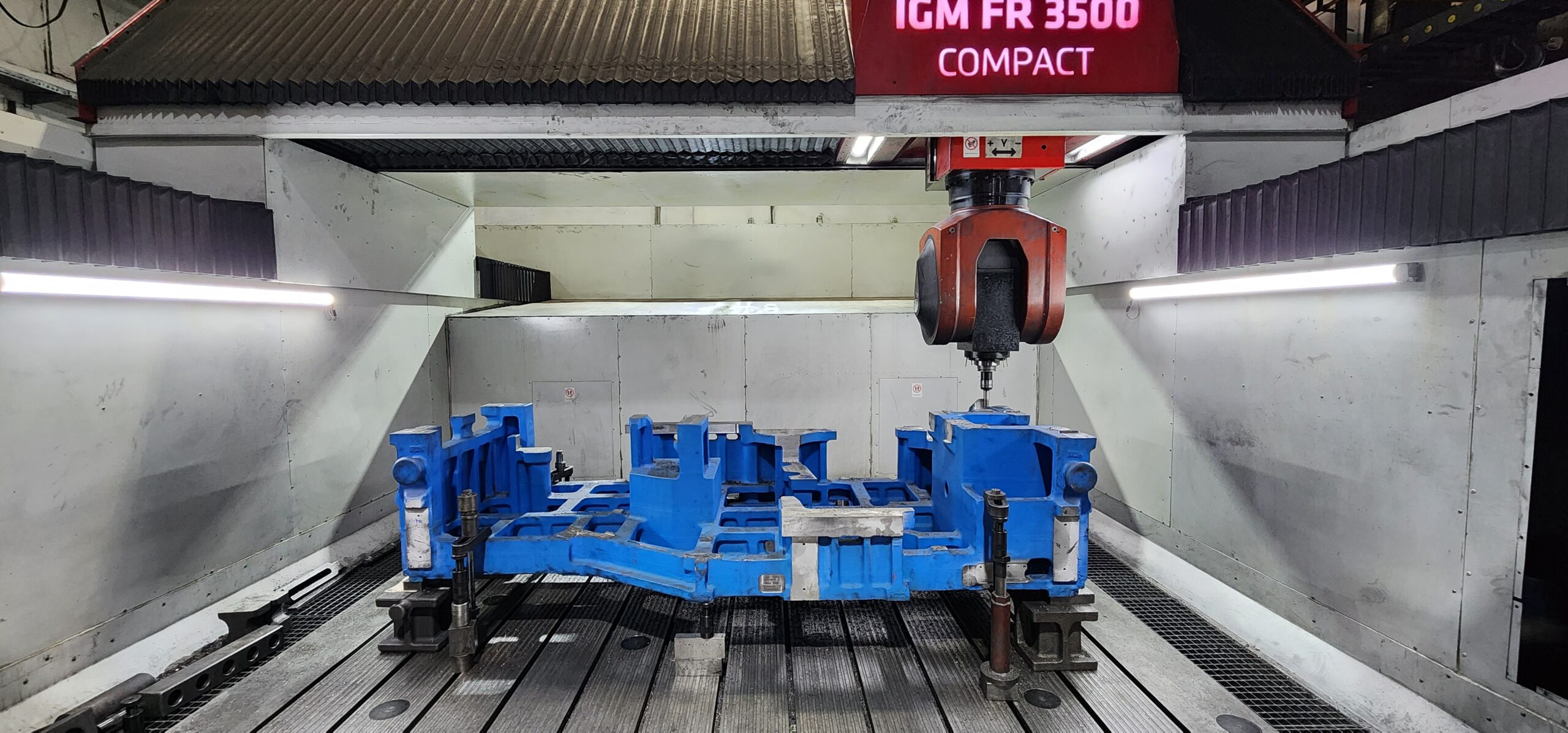 A TRUE PRODUCTION POWERHOUSE ENGINEERED FOR LARGE WORKPIECES WITH MASSIVE CAST-IRON STRUCTURE, ROBUST UPPER GANTRY CONSTRUCTION AND 5-AXIS HEAD EQUIPPED WITH A HIGH-TORQUE ELECTROSPINDLE IT ENSURES OUTSTANDING PERFORMANCE AND PRECISION. Its wide machining envelope and superior rigidity make it ideal for demanding applications that require consistent accuracy in every cycle.